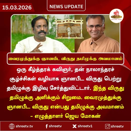 இந்திய துணைஜனாதிபதிக்கு ஞானபீடப்பரிசில் பெரும் பங்களிப்புண்டு என அறிந்திருக்கலாம். இந்த தேர்தலை ஒட்டியும் ஏதேதோ கணக்குகள் இருந்திருக்கலாம்.