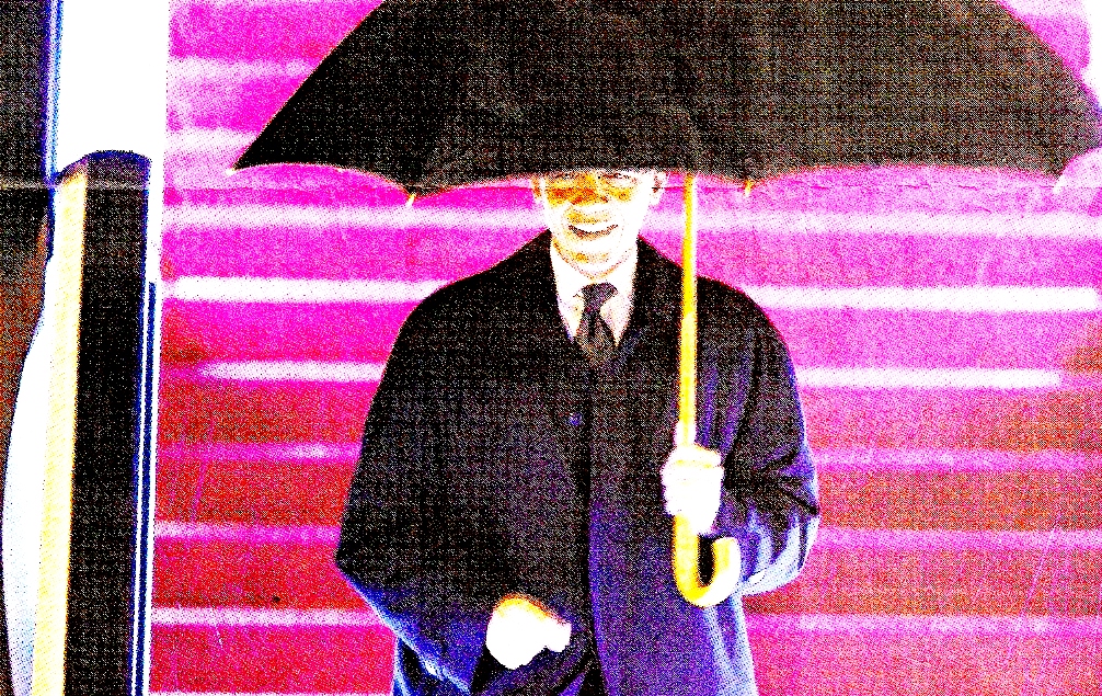 கொட்டும் மழையில் தன் குடையைத் தானே