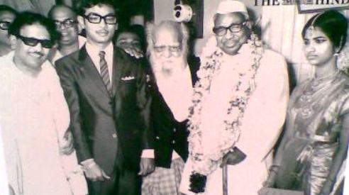 கலைஞர், அவர் மகன் அழகிரி( கோட்டு, சூட்டில்)