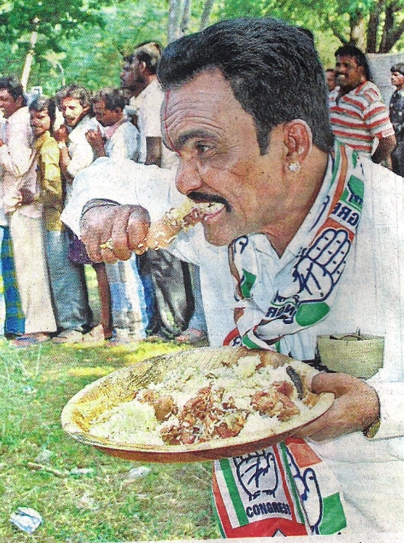 இந்த ஒரு போட்டோவை வைத்தே எதிர்கட்ச்யினர் விததை காட்டலாம்.(ஆனால் அவர்கள்(எதிர்) கட்சி தொண்டர் ஒரு மாட்டையே அடித்து சாப்பிடுவதுபோல படம் காங்கிரஸ்காரரிடம் இருக்கும் ஜாக்கிரதை)