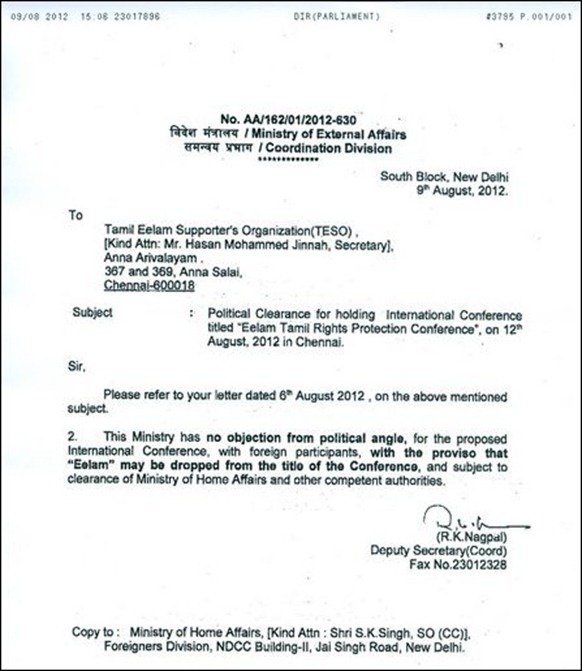 ( வெளியுறவுத்துறையிடமிருந்து தானே கடிதம் வந்தது