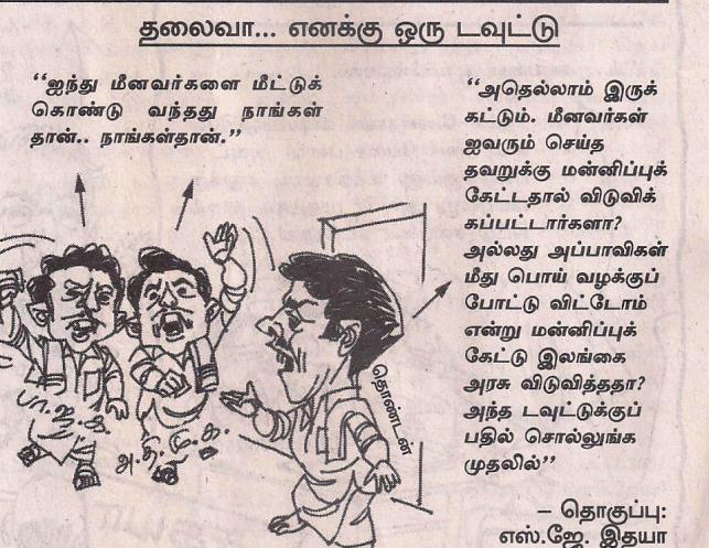 Like any other Tamil magazines this blog also providing masala stories from various paper and giving his own masala. Democracy everyone’s expression of opinion is allowed, but it should not be misused like this blog. The joke is quoting tuglak magazine and projecting like a intellectual !!n