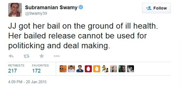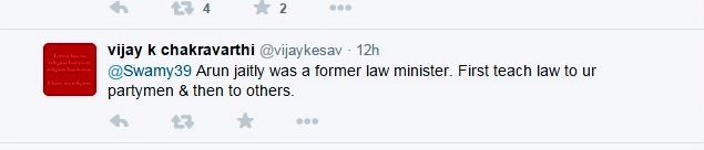 இதனால் கடுப்படைந்த சு.சுவாமி தன் ட்விட்டர் கணக்கில்