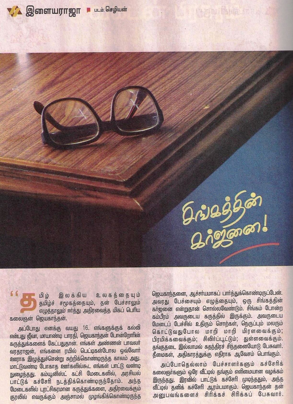 ஜெ.கே. பற்றி – இசைஞானி இளையராஜாவும், முன்னணி தமிழ்