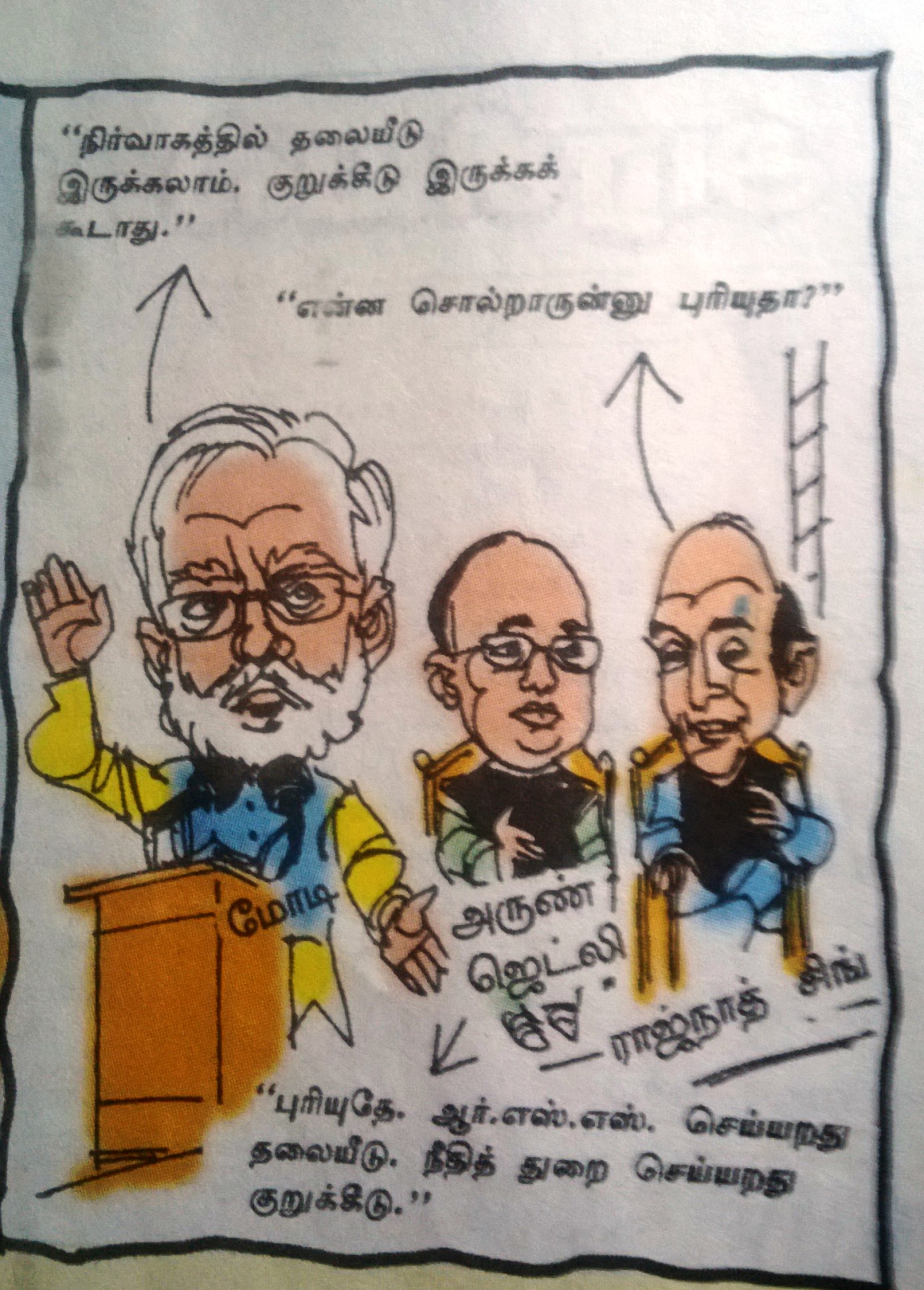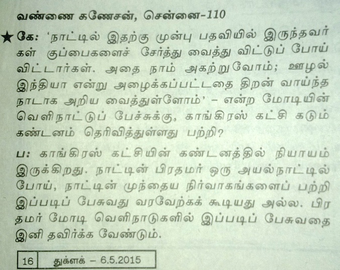 Coming to the cartoon the magazine says the PM should avoid talking like this in future ( ippadi pesuvathai ini thavirka vendum”) –It did not say he should stop “blabbering” —
