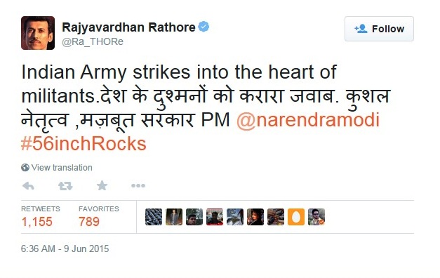 Is that any connection to – this post / PM 56″ Modiji / Indian Army / MP RajvardhanSingh Radhore ?