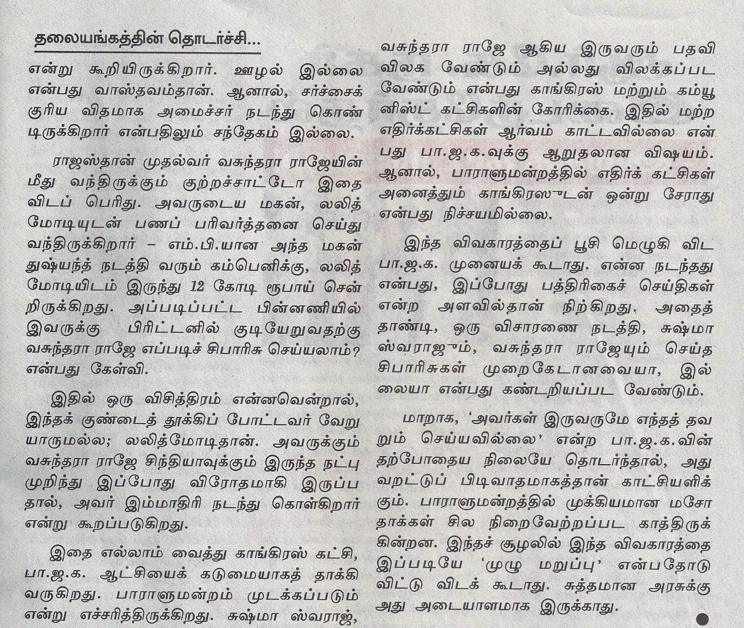 வசுந்தரா ராஜே விவகாரம் குறித்தும் –