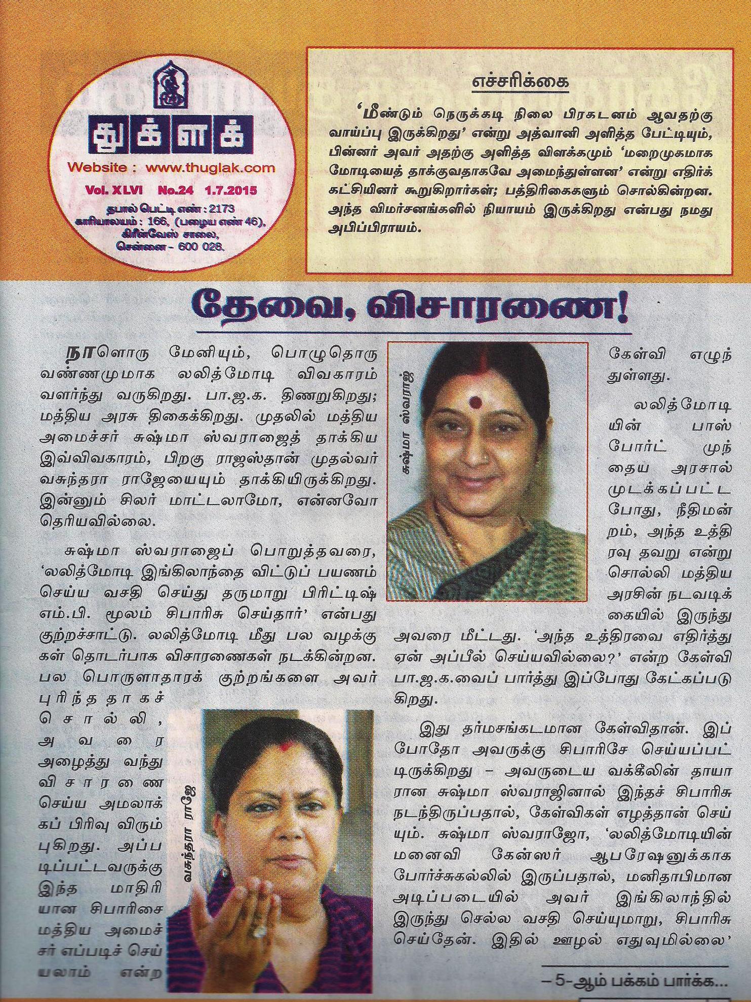 பிங்குபாக்: “துக்ளக்” சோ வலியுறுத்துகிறார் – “சுஷ்மாஜி/வசுந்தராஜி விவகாரத்தில் விசாரணை தேவை” …!!! | Classic Tamil