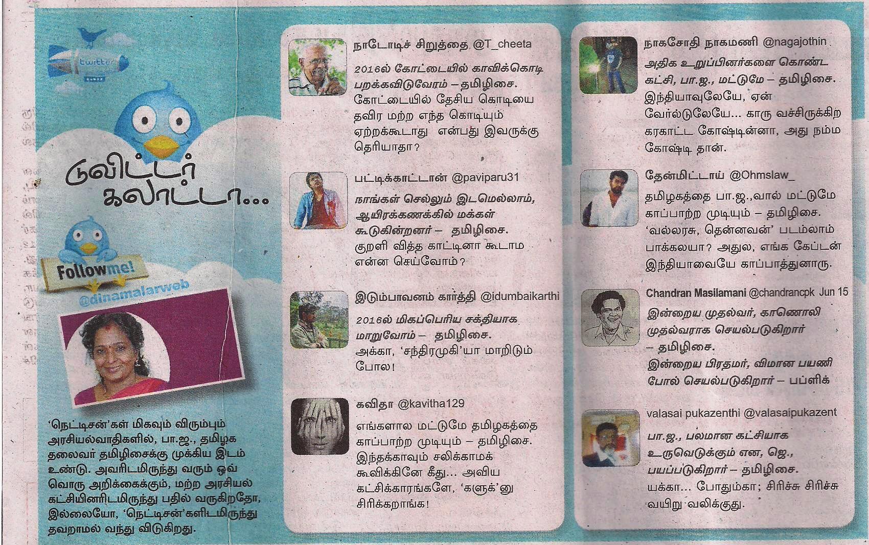 3 சதவிகிதம் ஆதரவு இருந்தபோதிலும், மக்களுக்கு காங்கிரஸ் (+திமுக) கசப்பாக இருந்தபோதிலும், எல்லாவற்றிலும் குரல் கொடுத்து, இளங்கோவன் தன் இருப்பைப் பதிவு செய்வது போல (இல்லாட்டா காங்கிரஸ் இருப்பதே எல்லோருக்கும் மறந்திருக்கும்), அதே டெக்னிக் தமிழிசை அவர்கள் ஃபாலோ பண்ணுகிறார்கள். ஆனால், கூடவே குழிதோண்டிக்கொண்டிருக்கும் ஹெச்.ராஜா, பொன்னார் போன்றவர்களால், தமிழிசை ஜோக்கராகத் தெரிகிறார்.