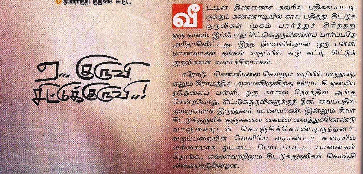 சிட்டுக்குருவி, சிட்டுக்குருவி சேதி தெரியுமா
