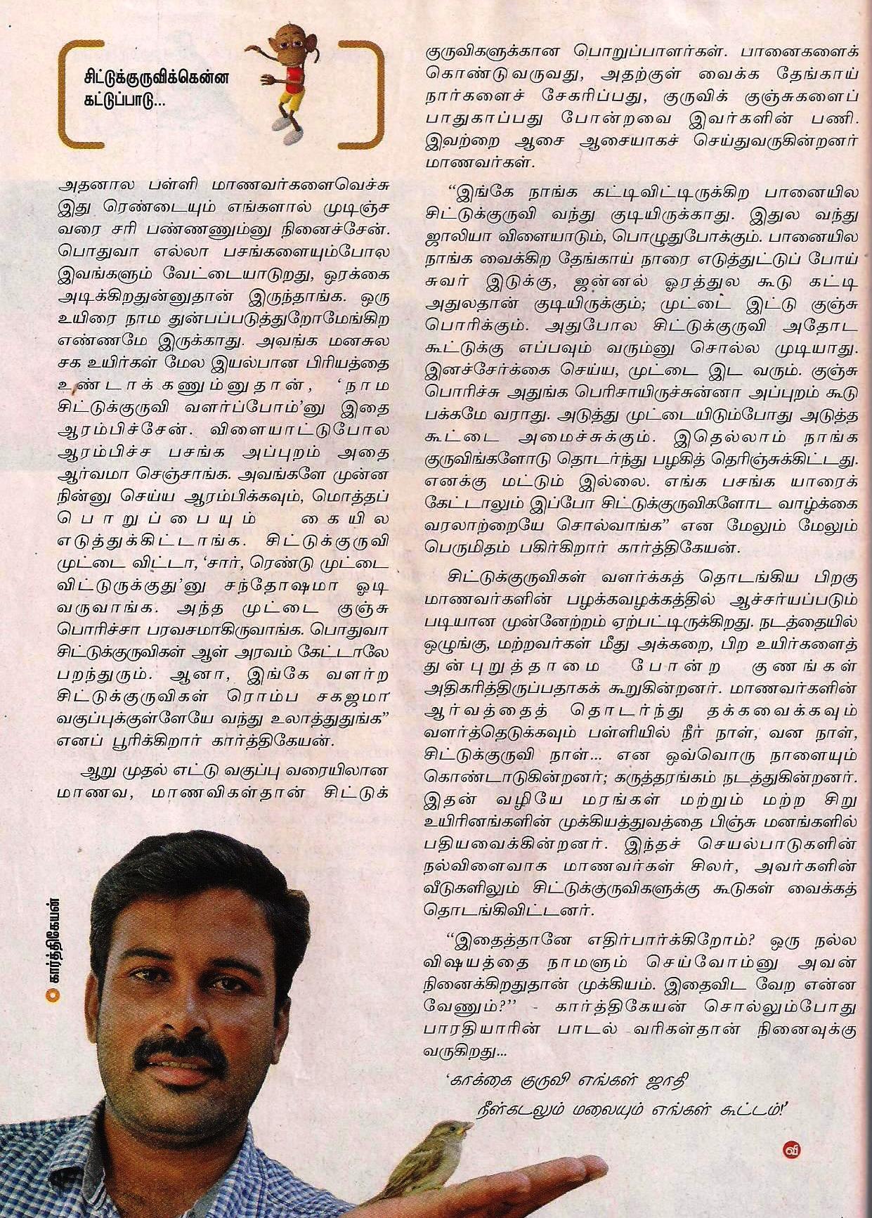 தமிழகத்தின் பள்ளிகளில் கார்த்திகேயன் போன்ற இன்னும் பல அக்கரையுள்ள ஆசிரியர்கள் உருவாக வேண்டும் என்று