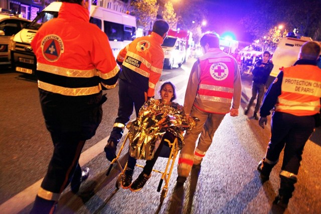 Spectators invade the pitch of the Stade de France stadium after the international friendly soccer match between France and Germany in Saint Denis, outside Paris, Friday, Nov. 13, 2015. Hundreds of people spilled onto the field of the Stade de France stadium after explosions were heard nearby during a friendly match between the French and German national soccer teams. French President Francois Hollande says he is closing the country’s borders and declaring a state of emergency after several dozen people were killed in a series of unprecedented terrorist attacks. (AP Photo/Christophe Ena)