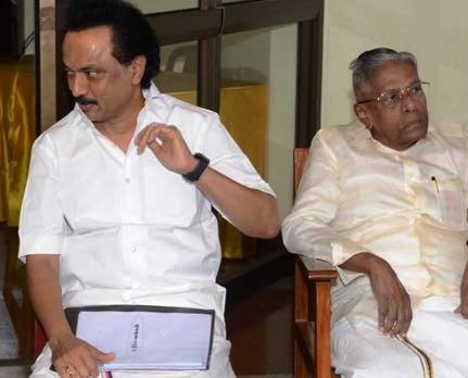 ஸ்டாலின் அவர்கள், தான் ஒரு தலைவர் என்று காண்பித்துக்கொள்ளவேண்டிய நிர்ப்பந்தம்.இப்போ தமிழகத்துல, தினகரன் அதிமுக, ஓபிஎஸ் அதிமுக என்று அரசியல் சுழல்வது ஸ்டாலினுக்கு கொஞ்சம் UNCOMFORTABLEஆக உள்ளது. கம்யூனிஸ்ட் கட்சிகளுக்கு எந்தக் கட்சியோடு கூட்டு போடவேண்டிவரும் என்பது இன்னும் நிச்சயமாகத் தெரியவில்லை. திருமாவளவனை யார் கூப்பிட்டாலும் உடனே சென்று கலந்துகொள்வார். அது, ராஜபக்ஷேயைப் பார்த்து டிபன் சாப்பிட்டு பரிசு வாங்கவேண்டுமானாலும் சரி, ஜெ.வைப் பார்க்காமலேயே, எல்லாம் சரியாக நடக்கிறது என்று ‘ஆமாம்சாமி’ போடவேண்டுமானாலும் சரி, ‘ரெட்டி சுருட்டிய பணத்தில் கொஞ்சம் பெற்றுக்கொள்வதானாலும் சரி’. அவருக்கும் கொள்கைக்கும் சம்பந்தமேயில்லை.