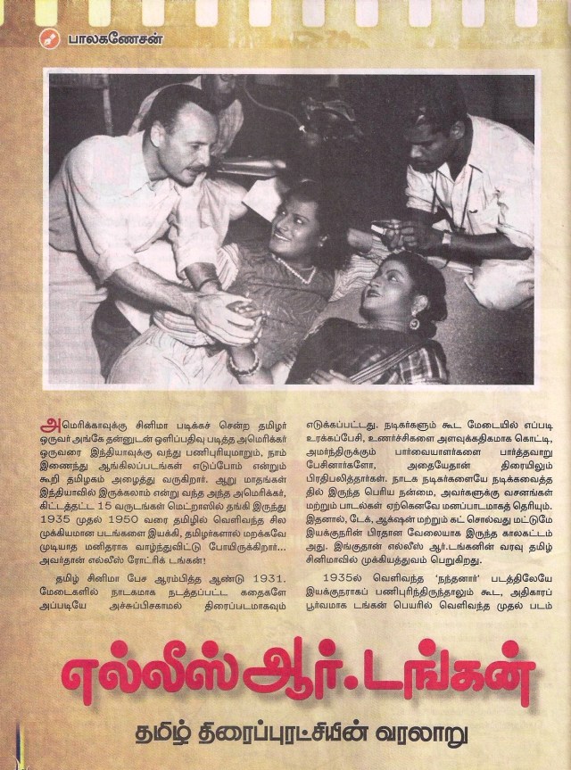 அந்த காலத்திய சினிமா உலகம் பற்றியும், எல்லிஸ் ஆர். டங்கன் பற்றியும் விவரமாகக்கூறும், – திரு.பால கணேசன் எழுதிய ஒரு