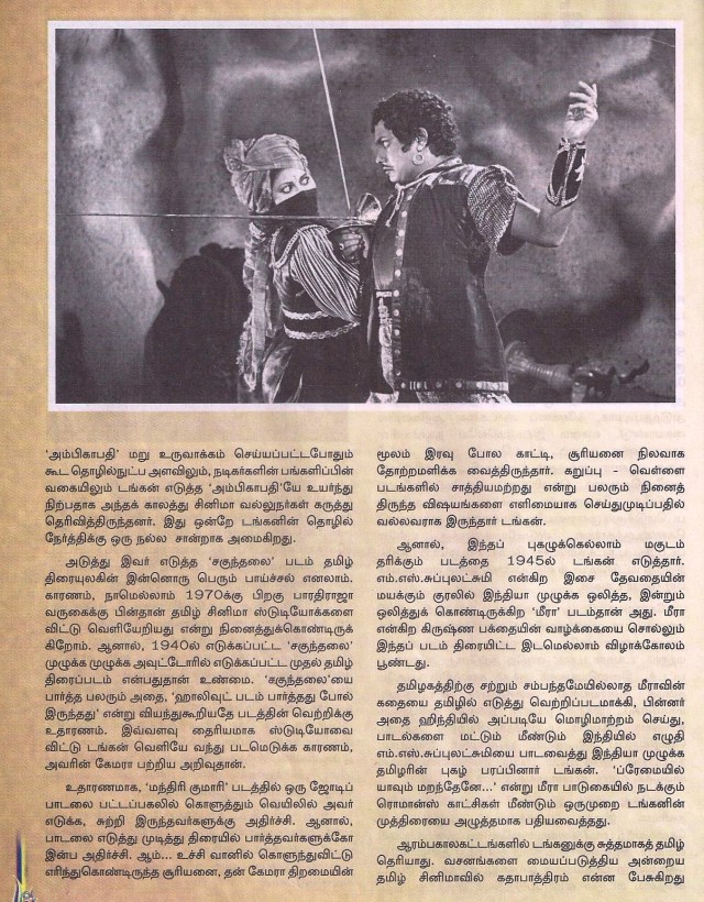 எம்.எஸ்.சுப்புலக்ஷ்மி அவர்களின் சகுந்தலை, மீரா, மாடர்ன் தியேட்டர்சின், எம்ஜிஆர் நடித்த மந்திரிகுமாரி …..