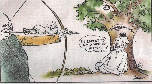 (2) எதிர் கட்சிகளின் வேட்பாளராக நிதீஷுக்கு அவா தான்; ஜனதா தளம் பல கோஷ்டிகளால் ஆனது; தவிரவும் கம்யூனிஸ்டுகள் தேர்தலுக்கு முன்னே எந்த ஒரு ஒருமன தீர்மானங்களை எட்ட விட மாட்டார்கள்; தேர்தலுக்கு பின் கட்சிகளின் பலம் பார்த்து என்று மழுப்பிவிடுவர். அரசில் சேர்வோமோ மாட்டோமா என்று கூட சொல்ல மாட்டார்கள். அவர்களை வைத்துக்கொண்டு தேர்தலை சந்திப்பது மடியில் பூனையைக் கட்டிக்க கொண்டு சகுனம் பார்ப்பதே.