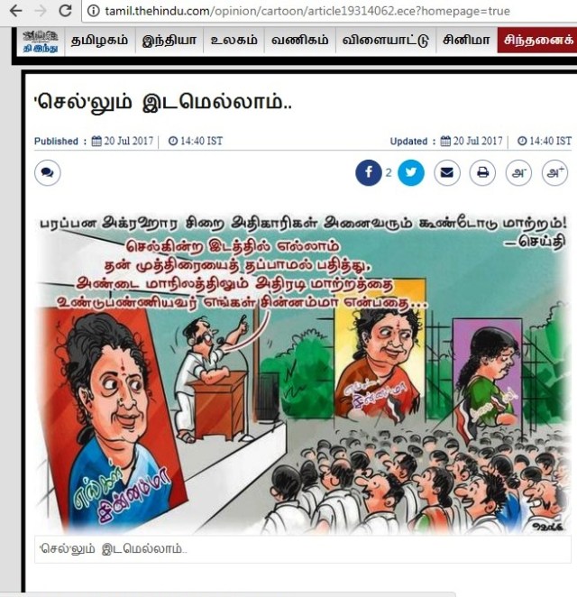 எவ்வளவு தெனாவெட்டு, அரசியல் அமைப்பின்மீதும், சட்டத்தின்மீதும் சசிகலாவுக்கு. விட்டால், பத்திரிகையில் அறிக்கையே வெளியிட்டுவிடுவார், எத்தனை கொடுத்தால் என்னை வெளியே விடமுடியும், யார் இந்தப் பணியை எடுத்துக்கொள்கிறீர்கள் என்று.