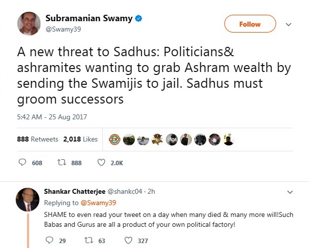 ‘Threat to Sadhus’ – எவ்வளவு மோசமான ட்வீட். சாட்டர்ஜி அவர்களில் பதில் ட்வீட், நியாயமாகச் சிந்திப்பவர்கள் இன்னும் தைரியமாக தங்கள் கருத்தை வெளிப்படுத்தத் தயங்குவதில்லை என்பதைச் சொல்லுகிறது. ‘படித்தவன் சூதும் வாதும் செய்தால் அய்யோ என்று போவான்’
