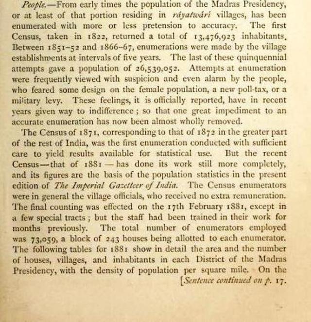 இந்த சென்சஸ் புள்ளி விவரங்கள் பிரிட்டிஷ் அதிகாரியான