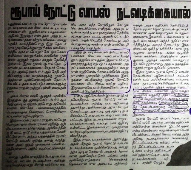 இது குறித்து தினமணி நாளிதழில் வெளிவந்துள்ள ஒரு