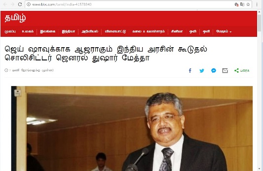 திரு.ஜெய் ஷாவுக்காக ஆஜராகும் இந்திய அரசின் கூடுதல்
