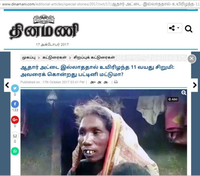 Elangovan sir and KM sir , the issue is whether this girl died to Aadhar or is there more cases likely to happen … we are a 100 + crore nation , for any scheme or any idea, there is always a opinion for and against . I agree BJP opposed it in the beginning, now why can’t you take it as , they realized the advantage and so implementing it . Yes I also agree that they opposed it for political reasons without studying the scheme or applying their thoughts . But it takes guts to accept their mistake and take it forward the same scheme( with improvements and MODIfication) and that too with the same person ( Nandan Nilkeni ) . There are lot of leakages in any govt scheme – and if aadhar or any other mechanism takes care of it to a large extend , we should welcome it . You know and I know the reservation keeps going to the well off people , it goes to the same set of people who used it and came up in life – real SC or ST are not benefited to a large extend , if the court demands or govt comes up with a scheme – there will be opposition for the same , however , it need to be done for the benefit of SC and ST who are last in the food chain and are really poor .
