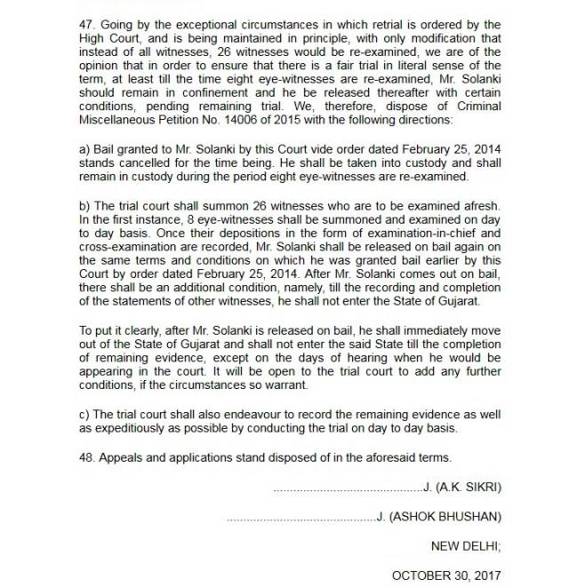அவரது அப்பீலை விசாரித்த சுப்ரீம் கோர்ட் இறுதியாக கீழ்க்கண்ட