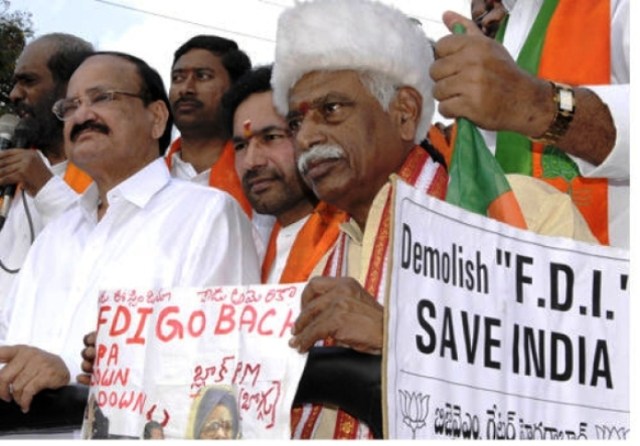 2014 பாராளுமன்ற தேர்தலுக்கு முன்னர், பாஜகவும் நேரடி அந்நிய முதலீட்டை கடுமையாக எதிர்த்து வந்தது…. அதுவும் முக்கியமாக சில்லறை விற்பனையில்…