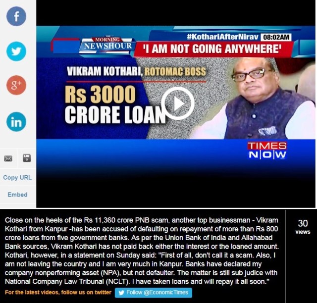 இந்த வழக்கு எப்போது வந்து, எப்போது கோர்ட்டுக்குப் போய்… அதற்குள் கோத்தாரி யார் என்பது யாருக்குமே நினைவிருக்காது, அவருமே இருப்பாரா என்பது சந்தேகம்தான். எல்லாவற்றிலும் அரசியல்வாதிகள் இருப்பதால்தான் வங்கி அதிகாரிகளுக்கும் கவலை இல்லை. ஒரே ஒரு விதிவிலக்கு இந்தியன் வங்கி கோபாலகிருஷ்ணன் (பலப் பல செய்து சிறிய விஷயத்தில் மாட்டிக்கொண்டவர். அவர் அதிகாரியாக இருந்தபோது காங்கிரஸ், மூப்பனார், திமுக என்று எவ்வளவு செய்திருக்கிறார்)