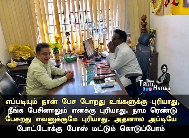 நேற்று செய்திகளைப் பார்த்து நானும்தான் ஆச்சர்யப்பட்டேன். ஒருவேளை அதிமுக base கொஞ்சம் கமலஹாசனை நோக்கி நகர்கிறதோ என்று.. ஆனாலும் கமலின் சகோதரர் எழுதியிருந்ததுபோல், 5%க்குமேல் வாக்கு வாங்கும் சக்தி கமலுக்கு கிடையாது. ரஜினியும் சேர்ந்தால் மொத்தம் 12% வரலாம். முடிந்த வரை இன்வெஸ்ட்மென்ட் இல்லாமல் அரசியல் கட்சி நடத்துவது அவருக்கு நல்லது.