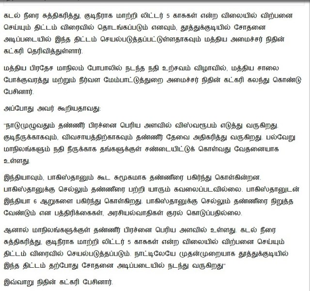https://timesofindia.indiatimes.com/india/nitin-gadkari-promises-potable-sea-water-at-5-paise-per-litre-in-india/articleshow/63334766.cms