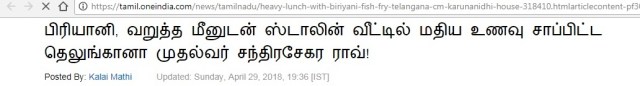 Kaviri mainthan sir r u not ashamed of ur self to write about a casual meal given to a cm of an indian state where r u standing may be ur house hold never ever had the minimum amount of manners to give even a cop of water.