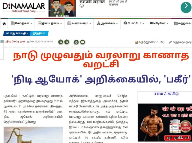 ( இப்போது தான் நாட்டில், தென்மேற்கு பருவ மழை பெய்யத் துவங்கி பல பகுதிகளிலும் நல்ல மழை பெய்து வரும்போது இப்படி ஒரு தலைப்புச் செய்தி..)