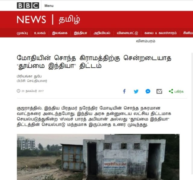 // மோதியின் சொந்த கிராமத்திற்கு சென்றடையாத “தூய்மை இந்தியா” திட்டம் // https://www.bbc.com/tamil/global-42068449