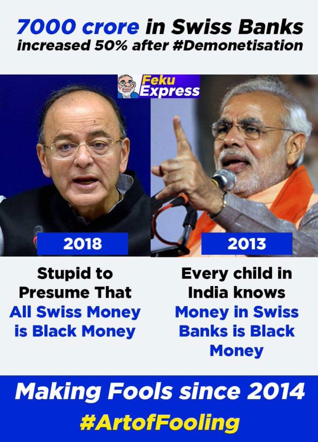 “இந்தியாவுக்கும் சுவிட்சர்லாந்துக்கும் இடையிலான இருதரப்பு ஒப்பந்தத்தின்படி, சுவிஸ் வங்கிக் கணக்கு வைத்திருக்கும் இந்தியர்களைப் பற்றிய விவரங்கள் 2019-ல் ( ??? 🙂 🙂 🙂 ) கிடைக்கும்.