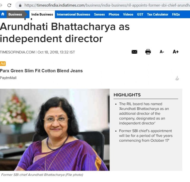 Reliance group RIL -Mukesh Ambani – company is not having any Non performing assets and it did not owe any outstanding interest payments to any banks. Hence appointing former SBI chairman may not be a issue as long as there is no plot to hide. RIL balance sheet is very strong.