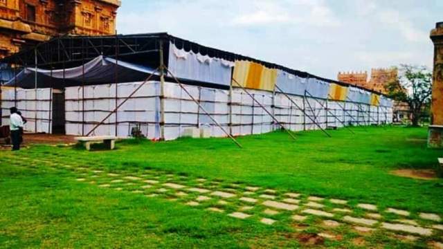அதே சமயம், கருணாநிதி, பட்டுவேட்டியுடன், இதேபோன்று புல்வெளிகளை அலங்கோலமாக்கி, தனக்கென தனி வாசல் மூலமாகப் பிரவேசித்து ராஜராஜன் கோவிலில் தனக்குப் பாராட்டுவிழா நடத்துவதுபோல நிகழ்ச்சி நடத்தியதும் எனக்கு ஞாபகம் வருகிறது.