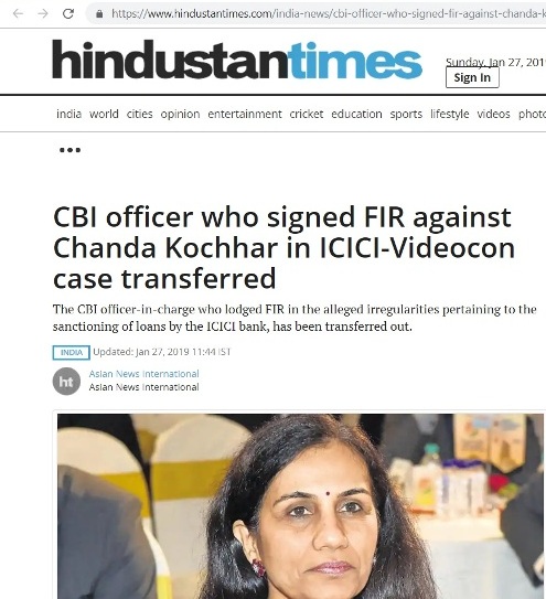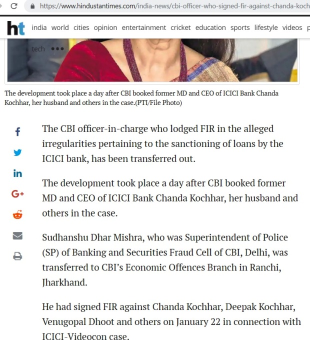 அந்த வங்கியின் (முன்னாள்) தலைமை நிர்வாக அதிகாரி சந்தா கோச்சார், அவரது கணவர் தீபக் கோச்சார், மற்றும் விடியோகான் குழும நிர்வாக இயக்குநர் வேணுகோபால் தூத் ஆகியோருக்கு எதிராக சிபிஐ FIR போட்டு, வழக்கு பதிவு செய்த நிகழ்வு தான் அது.