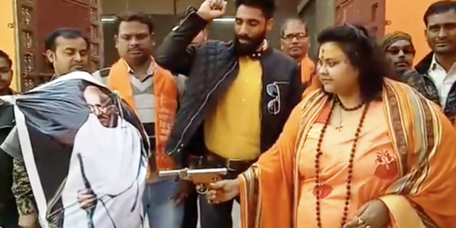 அவர், அவரது அமைப்பைச் சேர்ந்த இன்னும் 13 பேரையும் உடன் சேர்த்துக்கொண்டு காந்திஜியின் நினைவு தினத்தன்று, அவரது உருவ பொம்மையை ஒருவித விசேஷ துப்பாக்கியால் சுட்டு மகிழ்கிறார்.