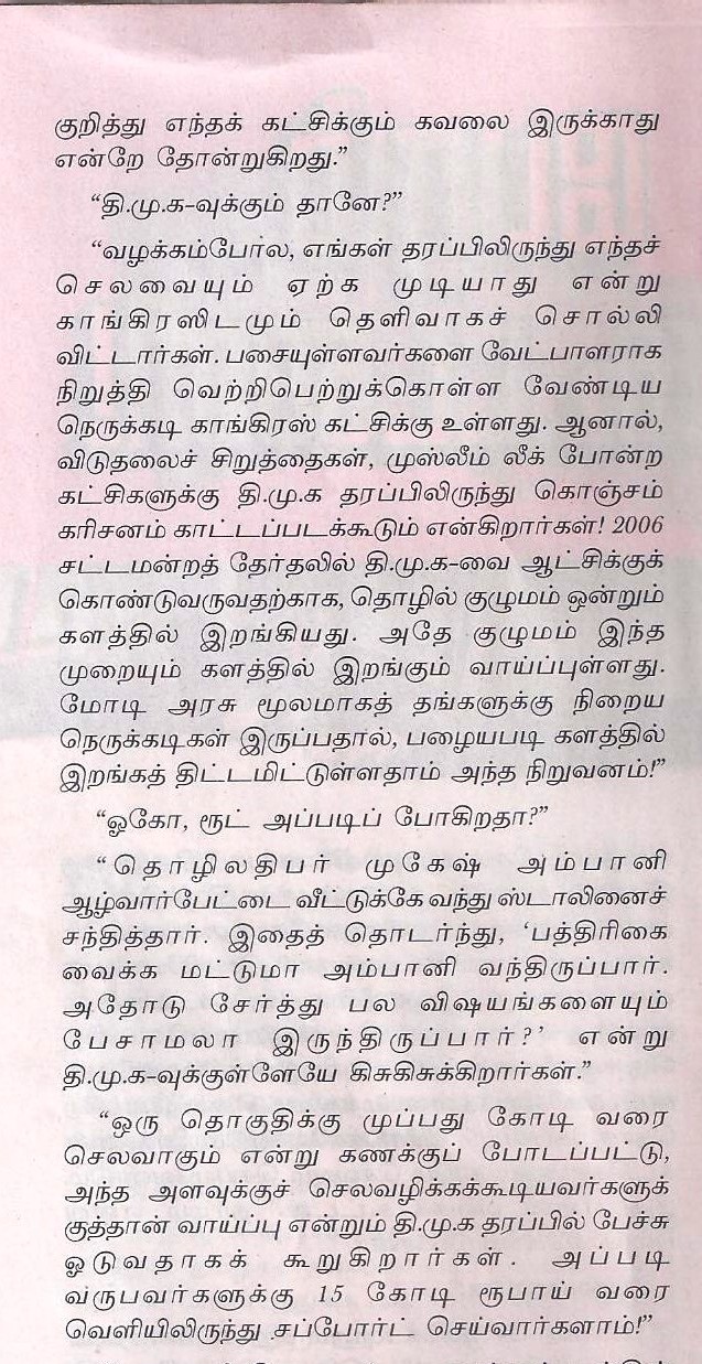 ஆமாம் – பண உதவி பற்றி…. நீங்கள் என்ன நினைக்கிறீர்கள்…? (பெரிய) அம்பானி நேரடியாக திமுகவுக்கு உதவி செய்வாரென்று நம்புகிறீர்களா…?