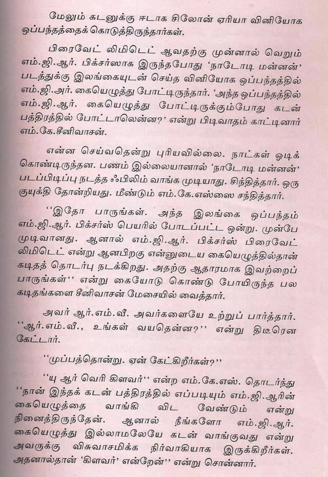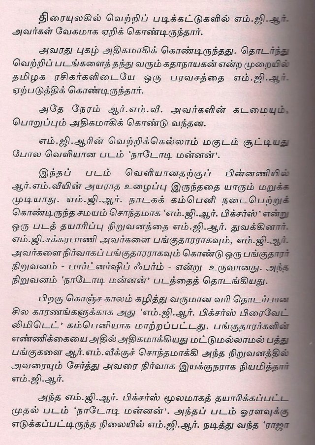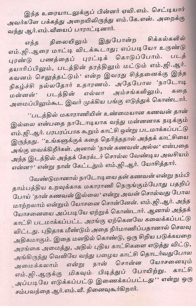 சொந்தமாக ஏன் தயாரித்தேன் … இதில் // கதையை செதுக்கிய மூவர் // என்பதில் ஆர்.எம் .வீரப்பன் பற்றி குறிப்பிட்டுள்ளார்