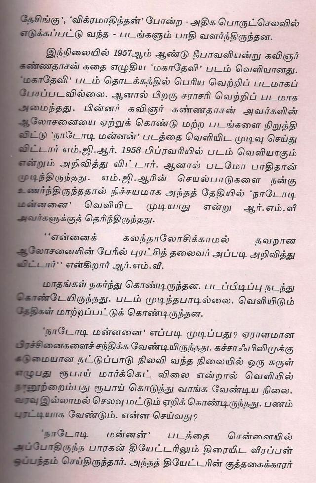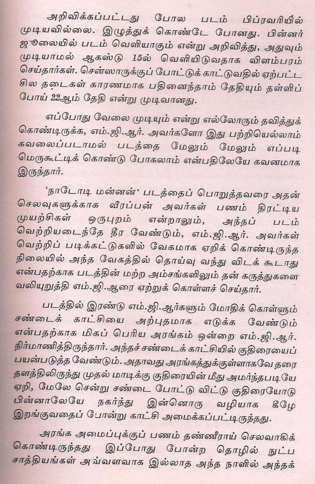 முழு படத்தின் அம்சங்களை அவரே ஆராய்ந்து பதிவிட்டதை படிக்க http://www.lakshmansruthi.com/cineprofiles/nadodi_mannan-index.asp சொடுக்கவும் — சுவாரஸ்யங்கள் நிறைய இருக்கிறது …!!!