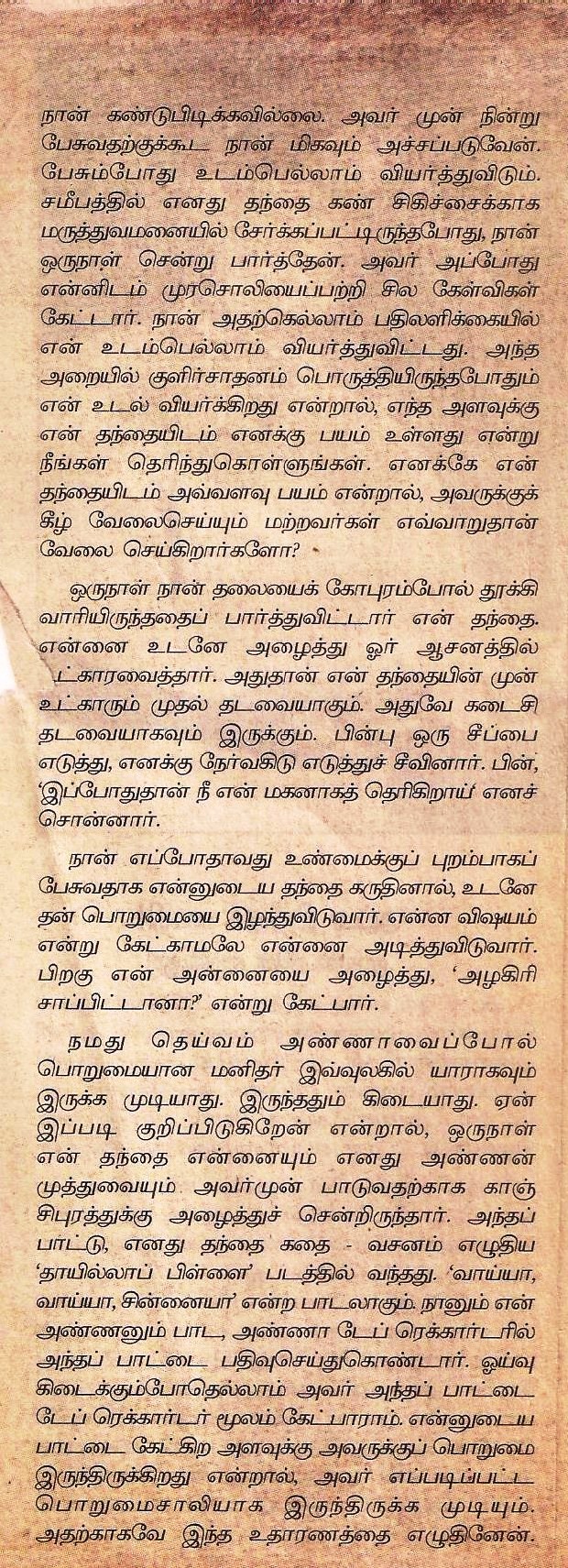 தற்போது ஜுனியர் விகடனிலிருந்து கலைஞர் நியூஸ் செய்தி சேனலின் ஆசிரியராக பொறுப்பேற்றிருப்பவர், பா. திருமாவேலன் — நல்ல பல கட்டுரைகளை விகடனில் இருந்த போது வெளியிட்டு வந்தவர் — அவர் எழுதிய ஒரு கட்டுரை :