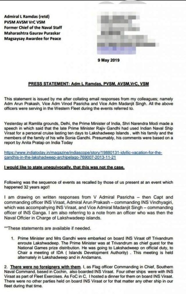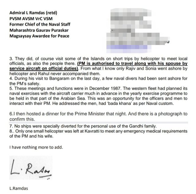 Rajiv and Sonia Gandhi used INS Viraat for travel to celebrate their holidays at Bangaram island. Indian Navy resources were used extensively. I am a witness. I was posted on INS Viraat that time. Commander VK Jaitly