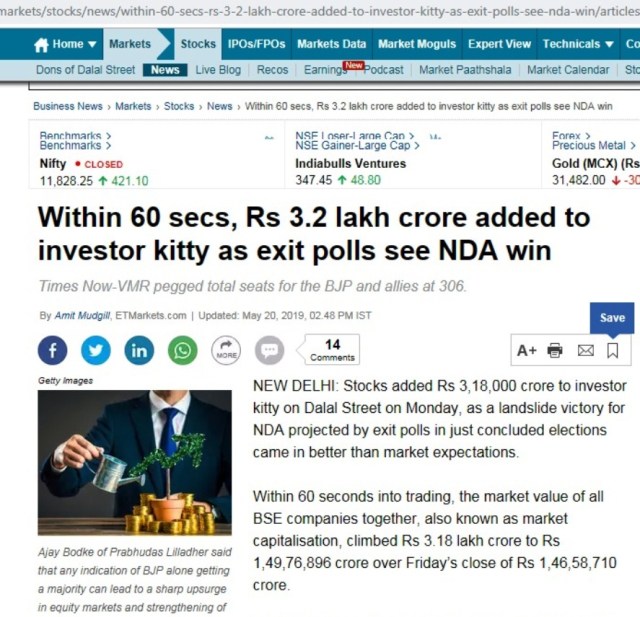 நேற்றிரவு வெளியான பாஜகவுக்கு ஆதரவான Exit poll முடிவுகளின்