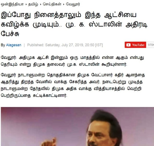 வேலூர் தேர்தல் பிரச்சார கூட்டத்தில் திரு.ஸ்டாலின்