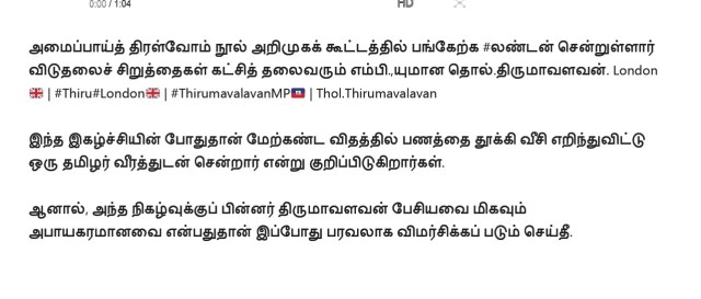 லண்டன் செய்திகள் உண்மையாக இருந்தால், திருமாவளவனின்