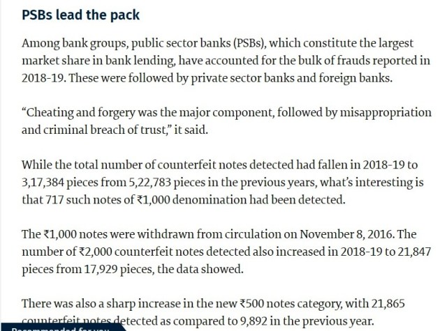 வங்கி முறைகேடுகள், பொதுத் துறை வங்கிகளில் அதிகமாகவும்,