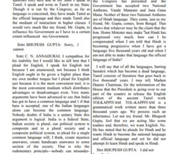இந்தி ஆட்சி மொழியாவதை எதிர்த்து உணர்ச்சிப்பூர்வமாக
