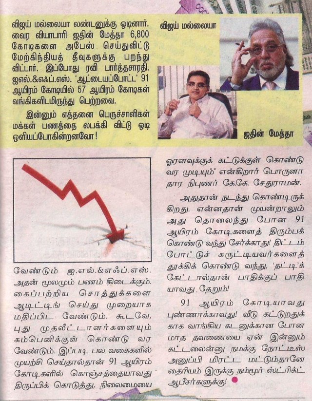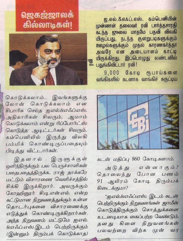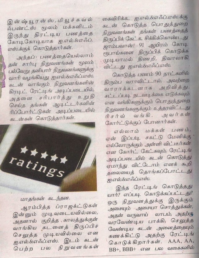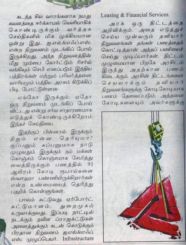 ஓராண்டுக்கு முன்பு திரு ராகுல் காந்தி அவர்கள் // ஐ.எல்.அண்ட் எப்.எஸ். என்றால் “ஐ லவ் பைனான்சியல் ஸ்கேம்ஸ் பார் யூ” என்று அர்த்தமா?” (ஐ.எல். அண்ட் எப்.எஸ். என்றால் நான் உங்களுக்காக நிதி ஊழல் செய்வதை விரும்புகிறேன் என்று அர்த்தமா?) // என்று கேட்கின்ற அளவுக்கு வெளிவந்த விவகாரம் …!.